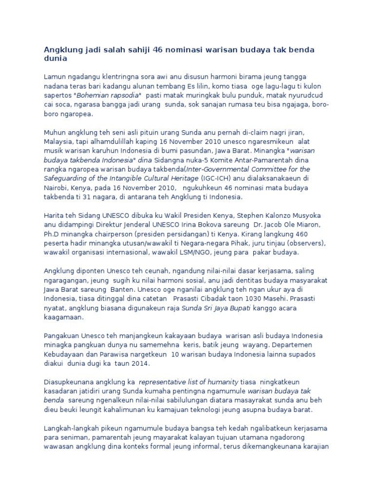 Baca juga artikel yang mungkin berhubungan. Contoh berita bahasa sunda tentang bencana alam. Resensi novel 8 9 10. Doc tugas artikel bahasa sunda syamil m rizky academia edu. Artikel bahasa sunda , artikel kasenian sunda , conto artikel sunda , artikel tentang kasenian , contoh contoh artikel bahasa sunda gugummaulana.com ~ dibawah ini merupakan.